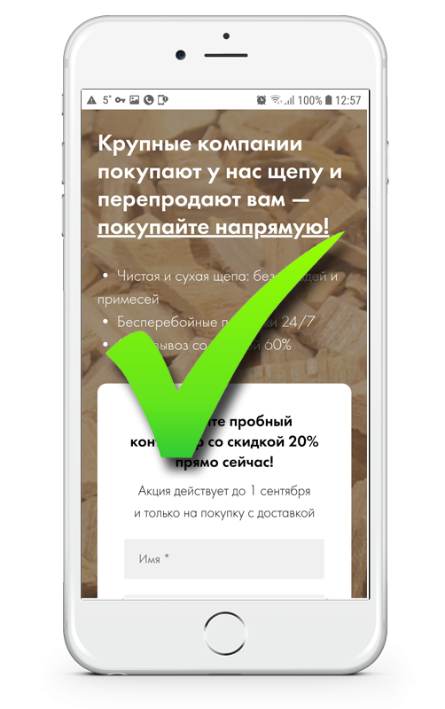 Лендинг для продажи щепы оптом. Поскольку были изучены конкуренты, выявлены уникальные особенности и преимущества, лендинг успешно отработал в Директе и окупился многократно.